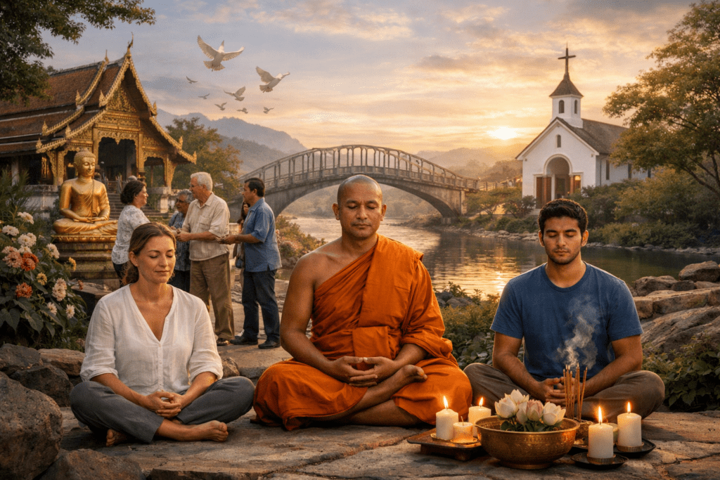 Im Zentrum unseres Wirkens steht die Förderung der Völkerverständigung. Durch die Lehren des Theravada-Buddhismus, Meditation und seelsorgerische Angebote schlagen wir Brücken zwischen Kulturen. Wir pflegen zudem einen intensiven Austausch mit anderen religiösen Gruppen und sozialen Einrichtungen.