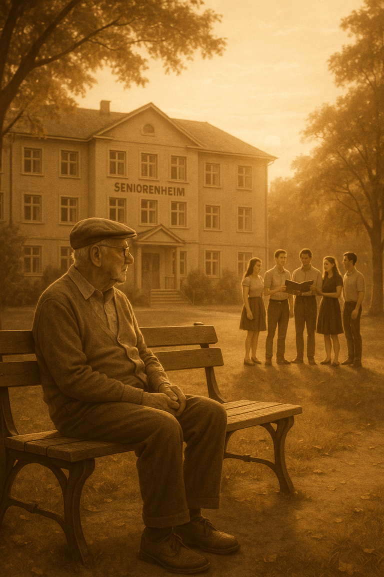 Da saß ich auf einer stillen Bank gegenüber eines Seniorenheims,